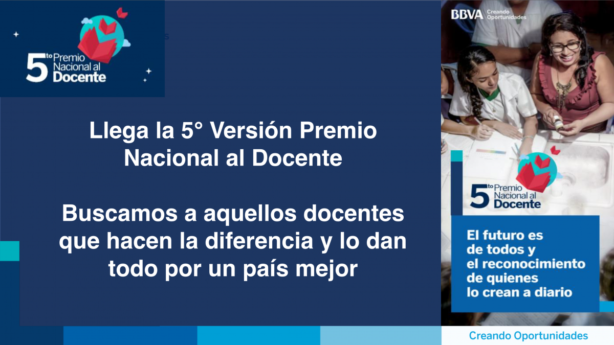 El PREMIO NACIONAL AL DOCENTE BBVA 2018, es una iniciativa que tiene por objetivo reconocer el esfuerzo, el trabajo y la creatividad de los docentes, que día a día desarrollan experiencias y prácticas en sus instituciones educativas para propiciar en los estudiantes el desarrollo de las competencias en lectura y escritura; en esta oportunidad con un foco especial a la iniciativas Digitales, entendiendo que éstas son herramientas fundamentales para promover la equidad e inclusión social, que contribuyen a impulsar la construcción de un país más próspero, justo y con mayor bienestar.