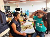 Por su parte María Yulixa en compañía de su maestra y guía estudiantil, Nancy Socorro Bohorquez, docente de básica primaria autora del semillero de investigación del centro educativo Pandigüando, se mostró feliz y llena de alegría de poder compartir con sus compañeros esta experiencia maravillosa para su aprendizaje, la cual fue grabada y será incluida en uno de los capítulos de la serie infantil “La Liga Vacanacho” de Telepacifico a través de la cual seremos testigos de las vivencias de los niños del occidente colombiano.