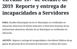 Circular 107- de octubre de 2019 Reporte y entrega de incapacidades a Servidores