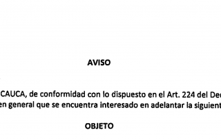 EL DEPARTAMENTO DEL CAUCA, de conformidad con lo dispuesto en el Art. 224 del Decreto 019 de 2012, informa [...]