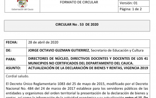 CIRCULAR No . 53 DE 2020 – ACTUALIZACIÓN DE LA DECLARACIÓN DE BIENES Y RENTAS, VIGENCIA 2019