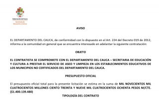 EL DEPARTAMENTO DEL CAUCA, de conformidad con lo dispuesto en el Art. 224 del [...]