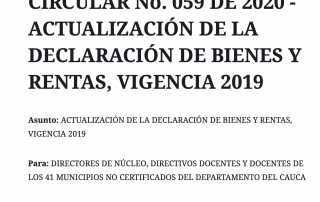 CIRCULAR No. 059 DE 2020 – ACTUALIZACIÓN DE LA DECLARACIÓN DE BIENES Y RENTAS, VIGENCIA 2019
