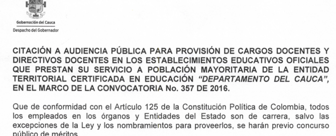 Citación a Audiencia Pública para la provisión de cargos de Docentes de la lista de elegibles de Educación Física, Recreación y Deportes - Grupo A; Ciencias Naturales Química, Educación Física, recreación [...]