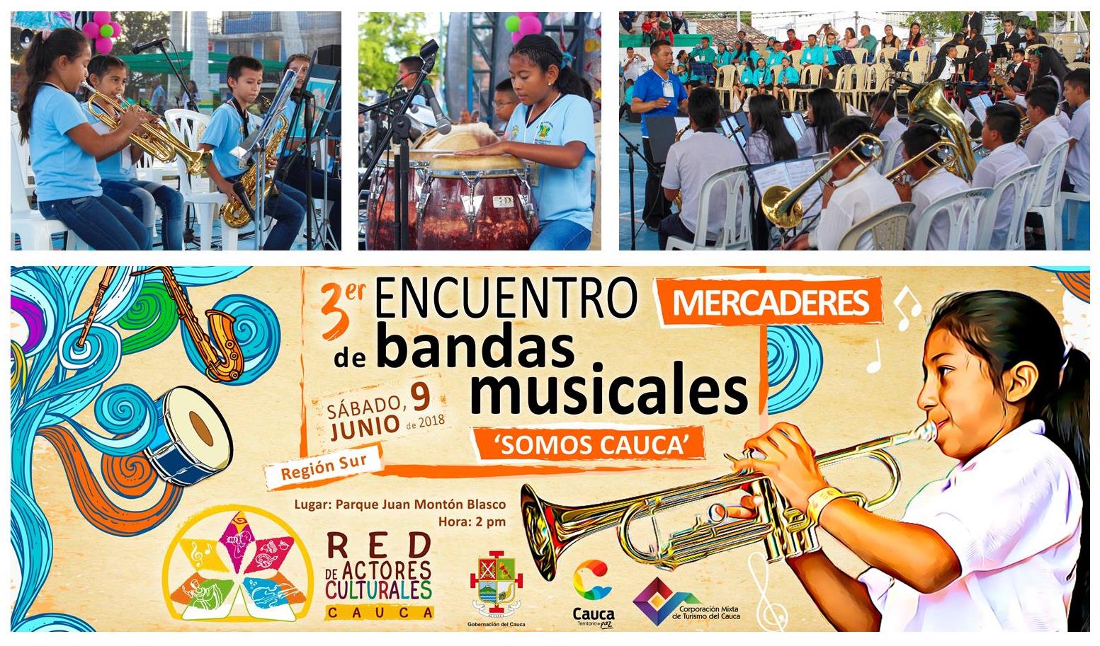 A ritmo de Cumbias, obras clásicas y mucho folklore colombiano, se vivió en Mercaderes el III Encuentro de Bandas Musicales ‘Somos Cauca’ del proyecto ‘Fortalecimiento de la Red de Actores Culturales Comunitarios en el Departamento del Cauca’.